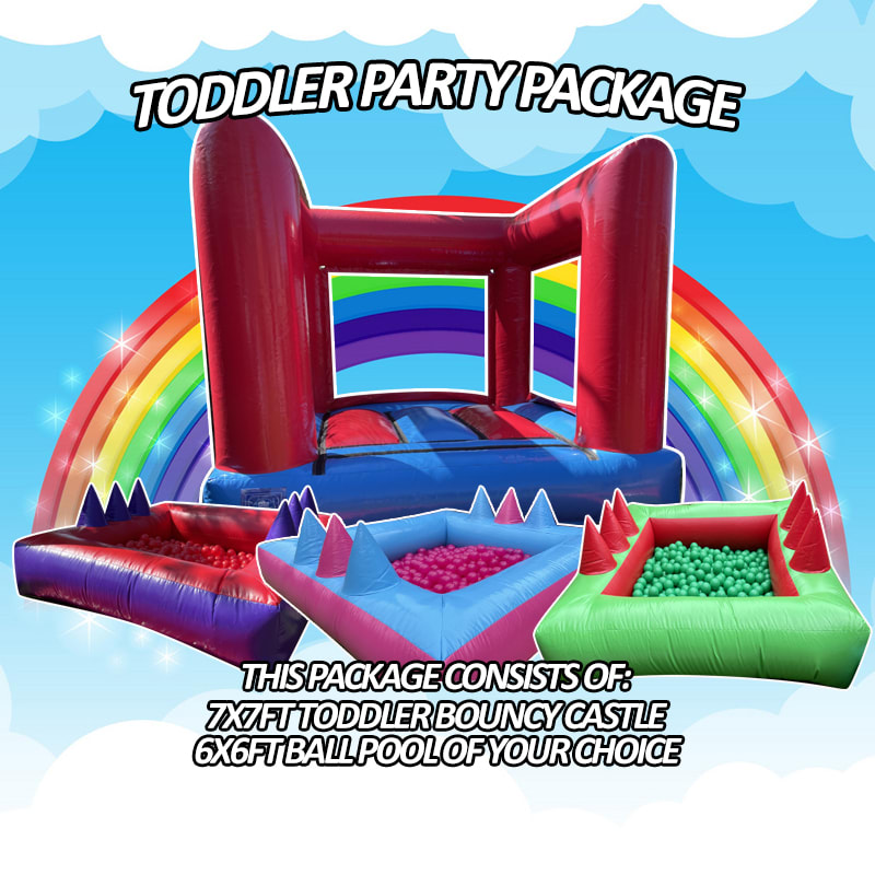 The Toddler Party Package is one of our most popular for small gatherings at home or at a venue. Included in this package is our 7x7ft Toddler Bouncy Castle & choice of Ball Pit which will easily cater for small groups upto 8-10 toddlers upto 5yrs old, If your venue has a low height ceiling this package will easily fit in all village hall rooms or Small back gardens with the maximum height of the castle at 7ft!!