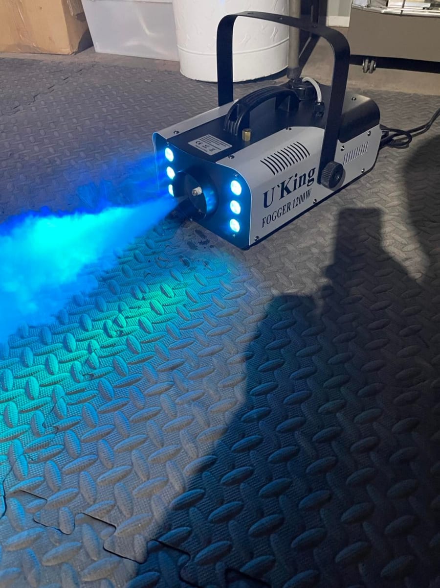 Our Smoke machine is a great little addition to your nightclub hire or DIY Disco Hire and will give you that extra WOW factor for your guests! Our smoke machine is similar to the ones you will find in most nightclubs and has 6 RGB LED lights that illuminate and creates for at the same time, helping to make light rays or light effects visible and create a certain mood. We use a high Density fog juice which is formulated for professional special effects which is water based and long lasting. We highly recommend short blasts only as this machine can fill a room with very quickly.