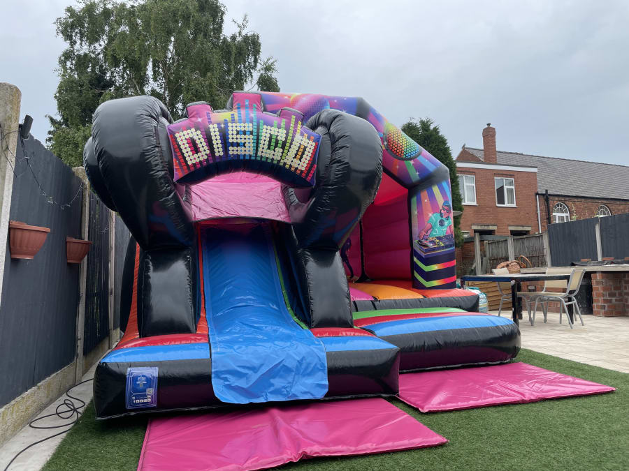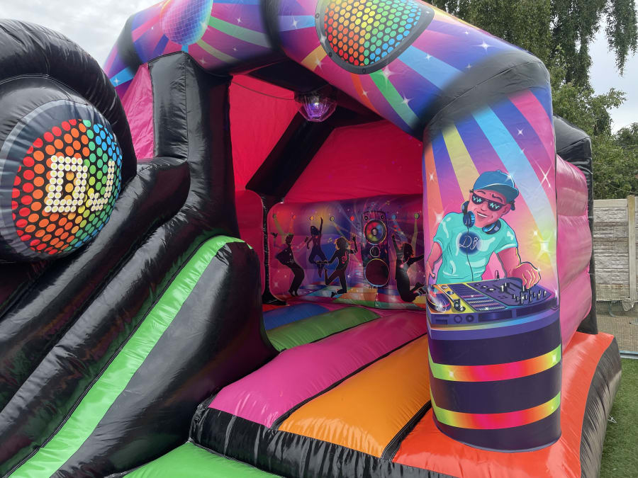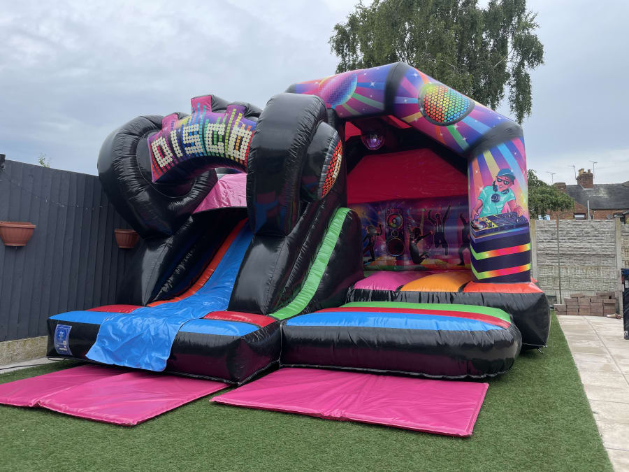 Add a touch of excitement and fun to your next event? Look no further than our premium 12x15ft 3D Disco Bouncy Castle with Slide! This eye catching Bouncy Castle Hire will surely give any party or gathering that WOW factor and keep your guest entertained.
