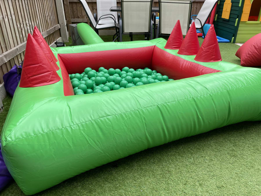 Our Red & Green Ball Pool Hire with added Air Jugglers is great fun for the younger children from toddlers upto 5years old Complete with the added air jugglers which allow our commercial soft play balls float above just like magic! whether they are playing deep under or interacting with the jugglers trying to keep those balls floating or passing one to the other!