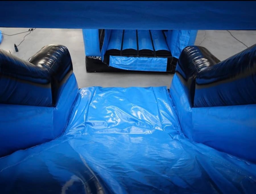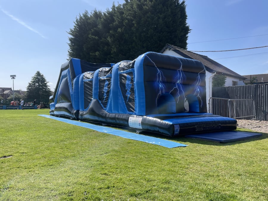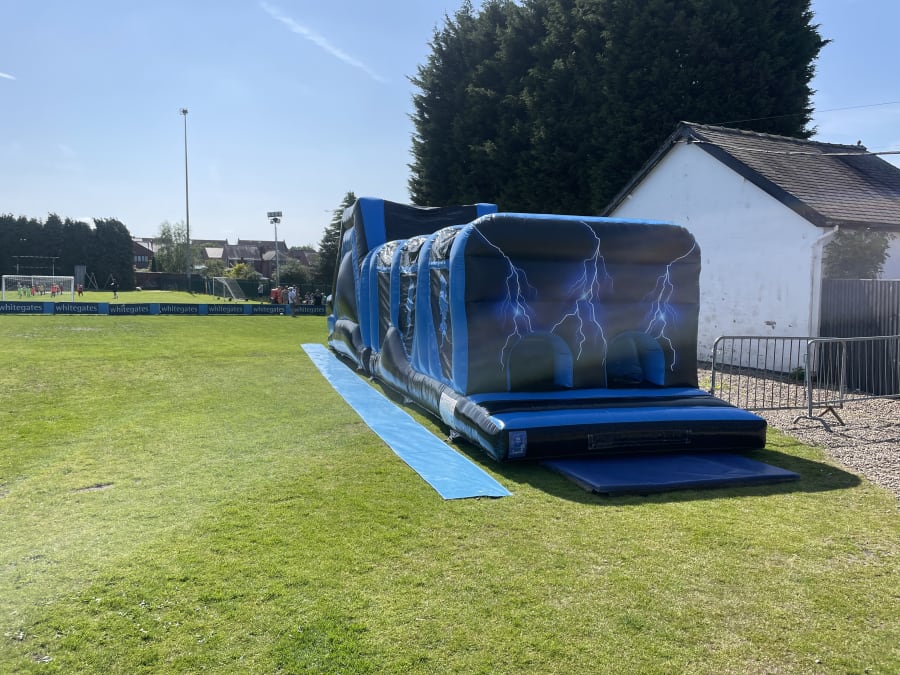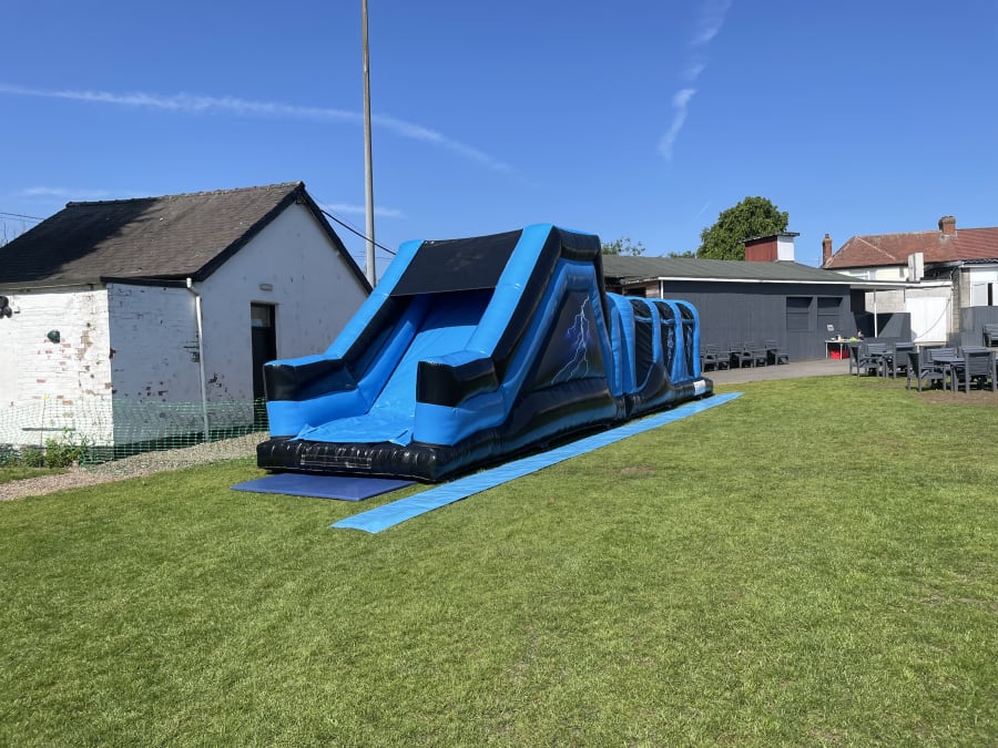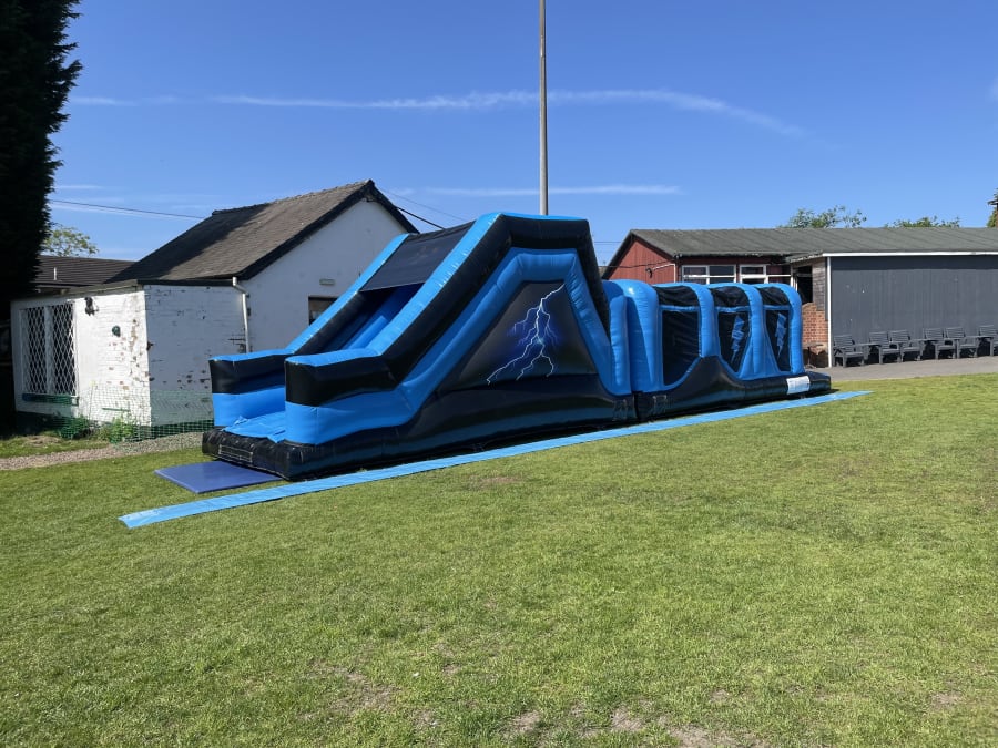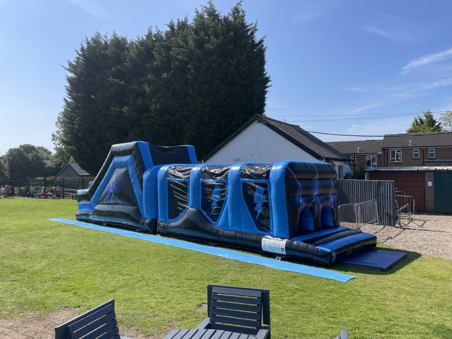 Suitable for both Adults & Children our book 40ft Assault Course hire in Derby & Nottingham for your next Event! A great choice of entertainment for Birthdays, Weddings, Fun Days, School fairs & more! Bouncy Castle or Inflatable Slide this Assault course combines both together giving you all the fun of both and unleashing that competitive side out of the bag by seeing who is the quickest to reach the end of the course, jump through the entry holes, manoeuvre through the Bish ‘n’ Bash Pillows, Climb up the steps and slide down the 8ft slide to victory! Not only is this Assault course fun for all ages but is also a real showstopper with an attractive spearmint blue & Black colour combination that looks great from a distance as well as up close and is available to Book in most postal areas in Derby & Nottingham areas such as Heanor, Ilkeston, Eastwood Belper, Ripley, Long Eaton, Sutton in Ashfield and more...