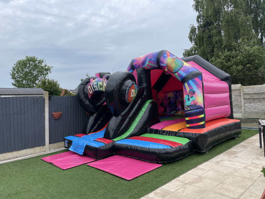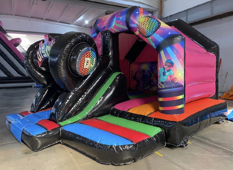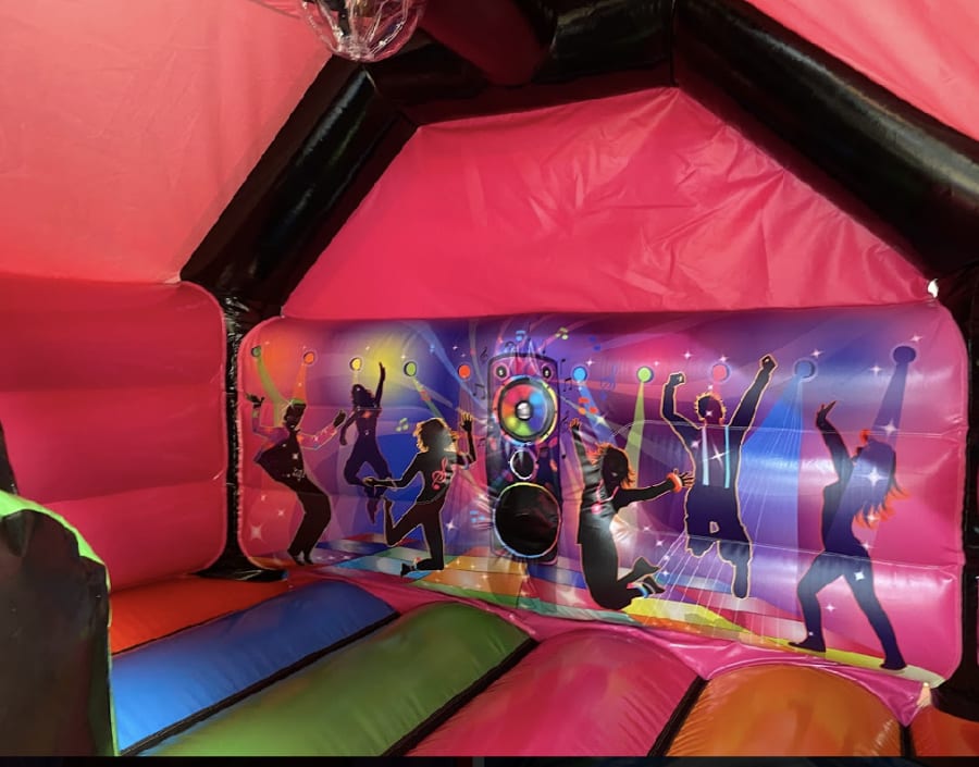 Add a touch of excitement and fun to your next event? Look no further than our premium 12x15ft 3D Disco Bouncy Castle with Slide! This eye catching Bouncy Castle Hire will surely give any party or gathering that WOW factor and keep your guest entertained.