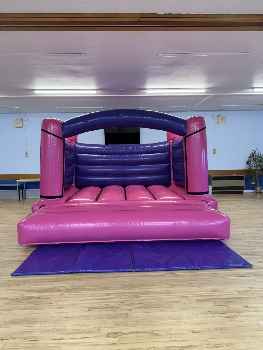 Make your next children's party a memorable one with our 12x12ft Pink & Purple Low Height Bouncy Castle.