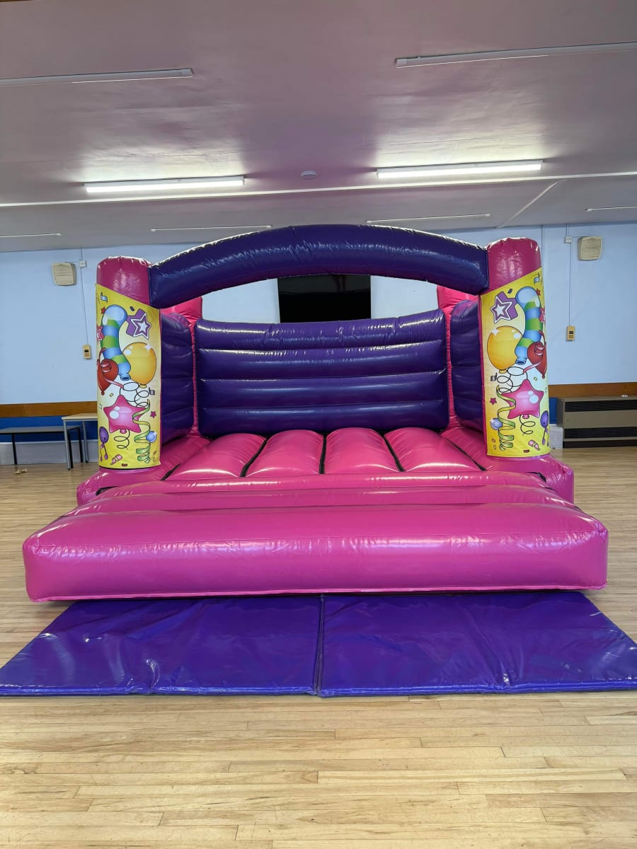 With its playful pink and purple colour scheme and cheerful party time theme, this bouncy castle is sure to captivate the imaginations of the children at your event. The spacious 12x12ft bouncing area size provides plenty of room for a small amount of children to safely enjoy themselves our Pink DidiCars are also a great addition to this Bouncy castle at indoor Venues