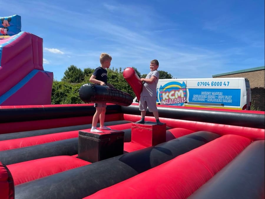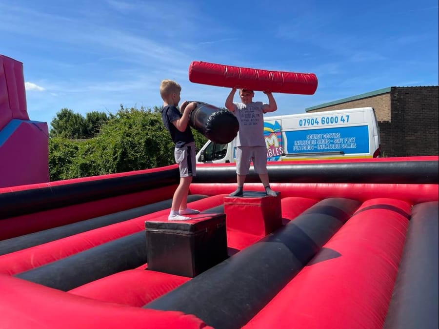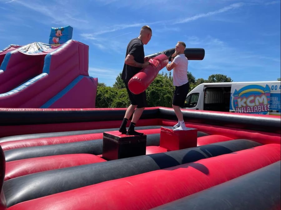 Our 20x20ft Gladiator Duel Hire in Derby, Nottingham, Heanor, Ilkeston, Ripley, Alfreton, Matlock, and Mansfield. Our team ensures a hassle-free setup and takedown, allowing you to focus on enjoying the event. We prioritise safety and provide detailed instructions on how to use the equipment on delivery, ensuring a safe and enjoyable experience for all.
