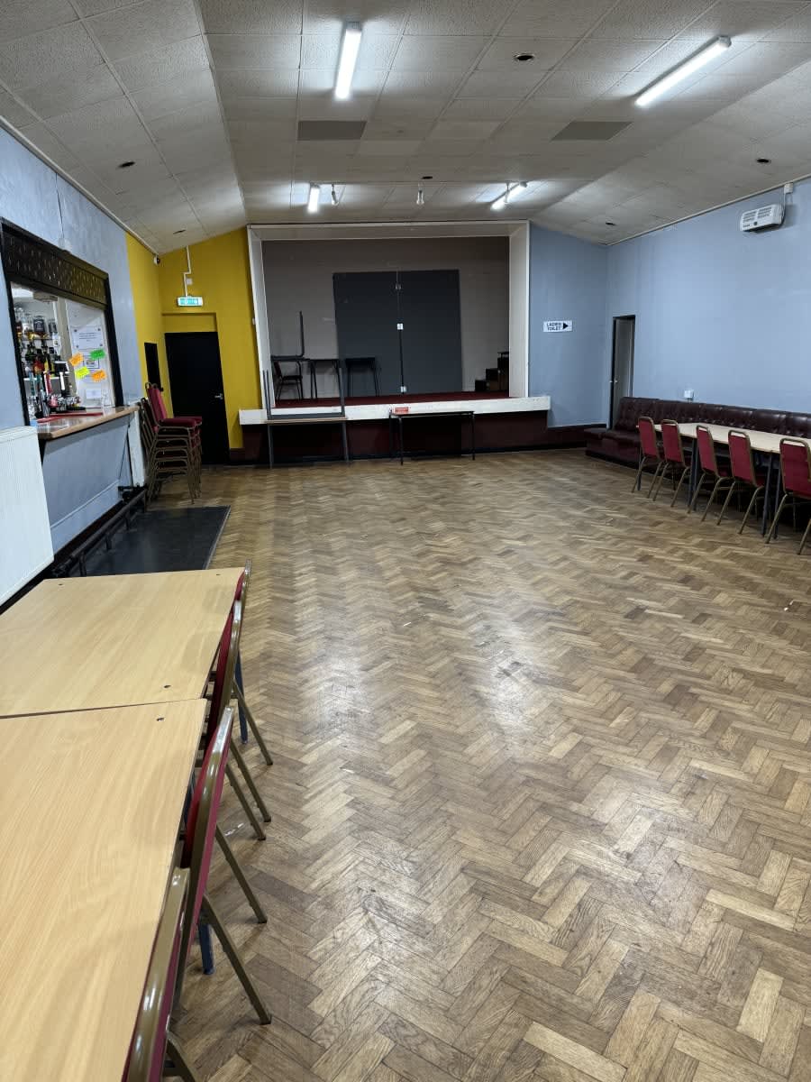 Marehay Village Hall is available to hire for smaller events including children's bouncy castle parties, Small private Weddings etc. The Function room includes a wrap around seating area, Stage, and Drinks bar serving ice cold Draught lagers, ales & Soft Drinks. The Function room can easily accommodate a standard sized bouncy castle no larger than 12x15ft however to maximise the use of the seating area we recommend this to be put in front of the stage area