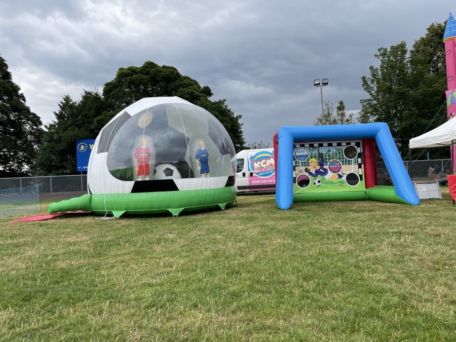 The Ultimate Football Themed Party Package in the area! Your guests will be Wowed With this package and guaranteed to have the most fun at a party ever football fans or not! This Package Consists of our Amazing Football Globe Bouncy Castle & Inflatable Penalty Shootout which will easily cater for around 30plus guests. Whether it’s a Birthday Party you are planning or just some entertainment for the BIG game at home this package is the Number 1 package for all Football Fans!
