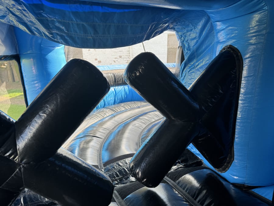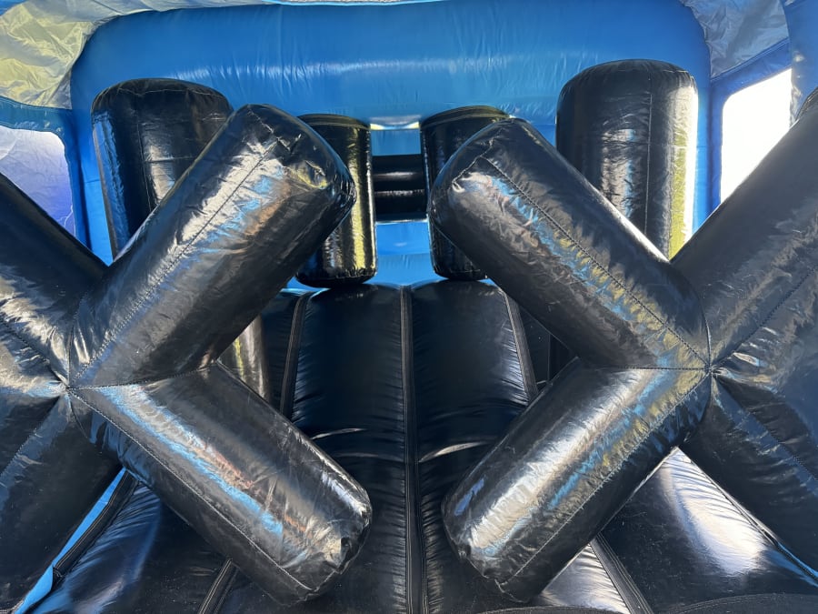 Our Thrilling inflatable Assault course hire in the east midlands awaits your next event! Our 3 Piece curved energy assault course includes our hugely popular 40ft energy assault course plus an extra additional curved part not only making it more exciting but easier to manage and operate! With the unique curved extension piece this brings your assault course hire all forward facing as opposed to an entry and exit at both ends whilst also making spectating better to keeping an eye on the process of your event whilst using this product. By using the curved piece this also makes the assault course hire shorter in length making it accessible for more venues!