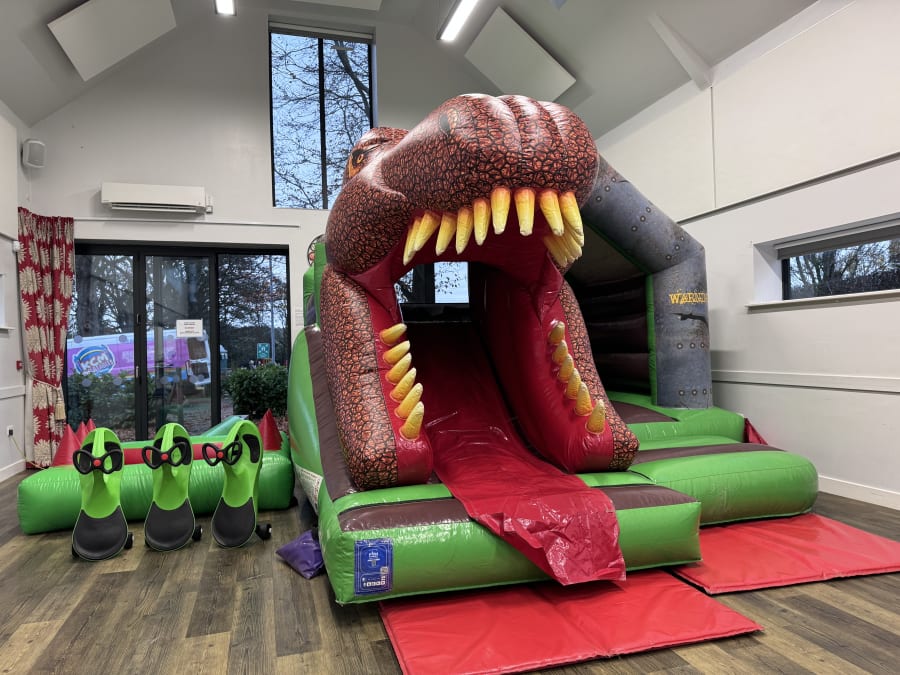 Transform your child's birthday celebration’s into a prehistoric adventure with our Indoor Dinosaur Party Package! Perfectly designed to spark the imagination of young dinosaur enthusiasts, this package promises a day filled with fun and excitement! Whether you're in Derbyshire or Nottinghamshire our dinosaur themed party ideas will come to you with our main services being in Heanor, Ilkeston, Ripley, Matlock, Sutton in Ashfield, and Mansfield, our bouncy castle hire team are ready to bring the Jurassic era right to your doorstep.